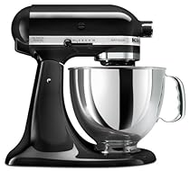 KSM150PSOB -10-speed slide control ranges from a very fast whip to a very slow stir -Tilt-head design allows clear access to the beater and bowl -Flour Power - 9 Cups -Mixing bowl capacity - 5 Quart -Polished stainless steel bowl finish -Contoured bowl handle -Multi-purpose attachment hub -Planetary mixing action 67 Point -'C' dough hook kneads yeast dough for bread and pizza recipes -Direct drive transmission -All metal construction -One year warranty KitchenAid will replace it free of charge -325 Watts -Dimensions: 13.9''H x 8.7''W x 14.1''D Includes: -Flat Beater -'C' dough hook -Two Piece pouring shield w/ wide chute -5 Qt. Stainless Steel bowl w/handle -Wire whip This Artisan Series model features a tilt-head mixer designed to give you easy access to the bowl and beaters. The 'C' dough hook kneads yeast dough for those bread and pizza recipes you've always wanted to try. With its all metal construction contoured bowl handle and polished stainless steel bowl finish this stand mixer is durable yet stylish. It is sure to become an asset in any kitchen. Available in Black White Gray Red Blue or Almond Cream.