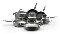 This cookware set is an exceptional value including all of the pans needed to equip your kitchen with the most used cooking pieces. As the set contains only basic pieces you'll really use each and every pan. It includes saucepans for whisking a homemade sauce or cooking your morning oatmeal a big stockpot for soups stews or boiling pasta and skillets (probably the most used pan in any kitchen) that will help you turn out perfect crepes or a simple grilled cheese sandwich. The set also includes a saute pan a wide straight-sided pan that can perform many of the functions of a skillet but features deep sides for extra capacity perfect for one dish meals. Start your dish in this pan by sauteing onions and browning meat then add your liquid and other ingredients into the same pan to finish on the stovetop or in the oven.